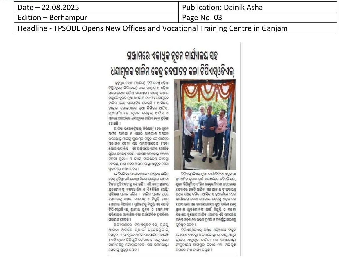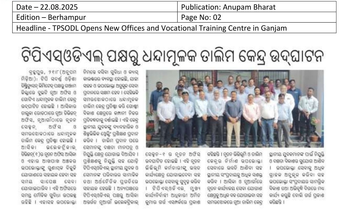 କାର୍ଯ୍ୟଜୀବନ@ଟିପିଏସ୍ଓଡିଏଲ୍