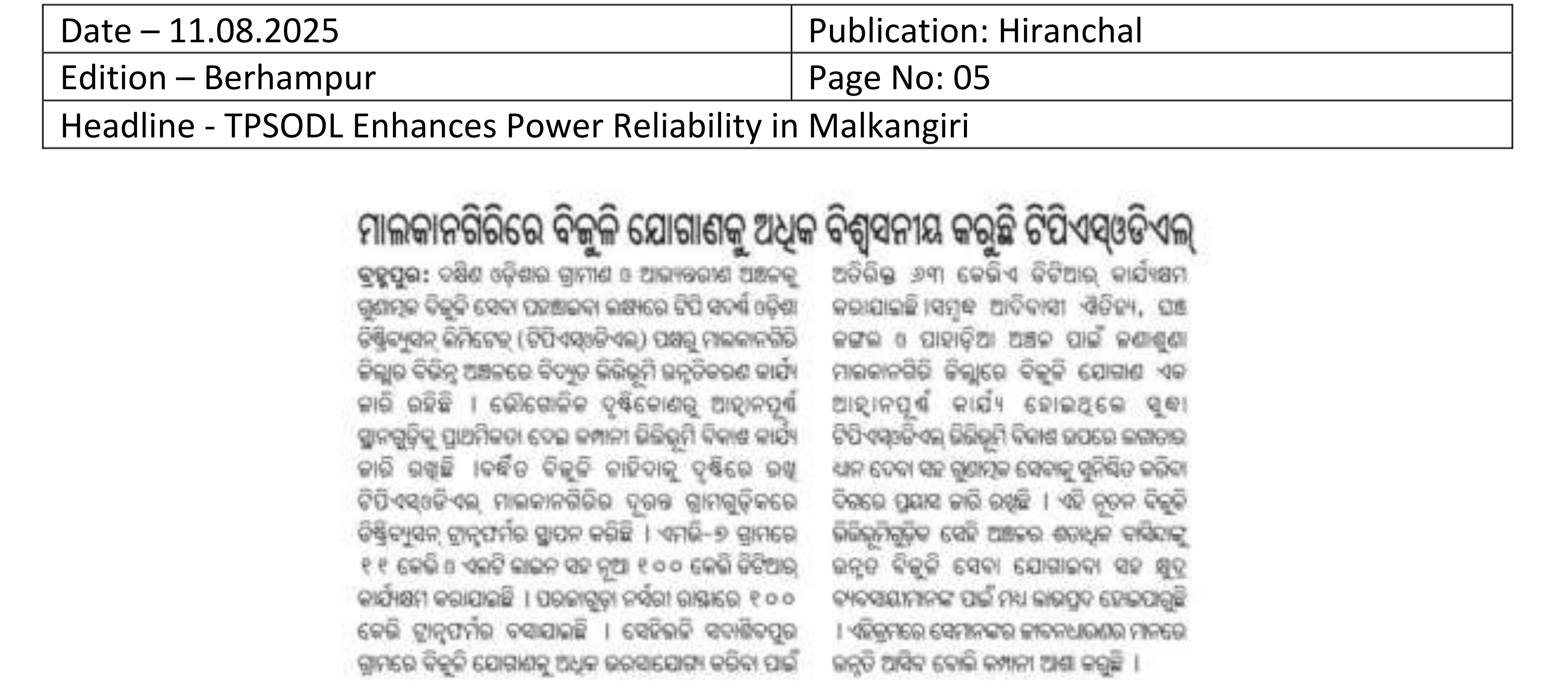 ମିଡିଆ କଭରେଜ ରିପୋର୍ଟ